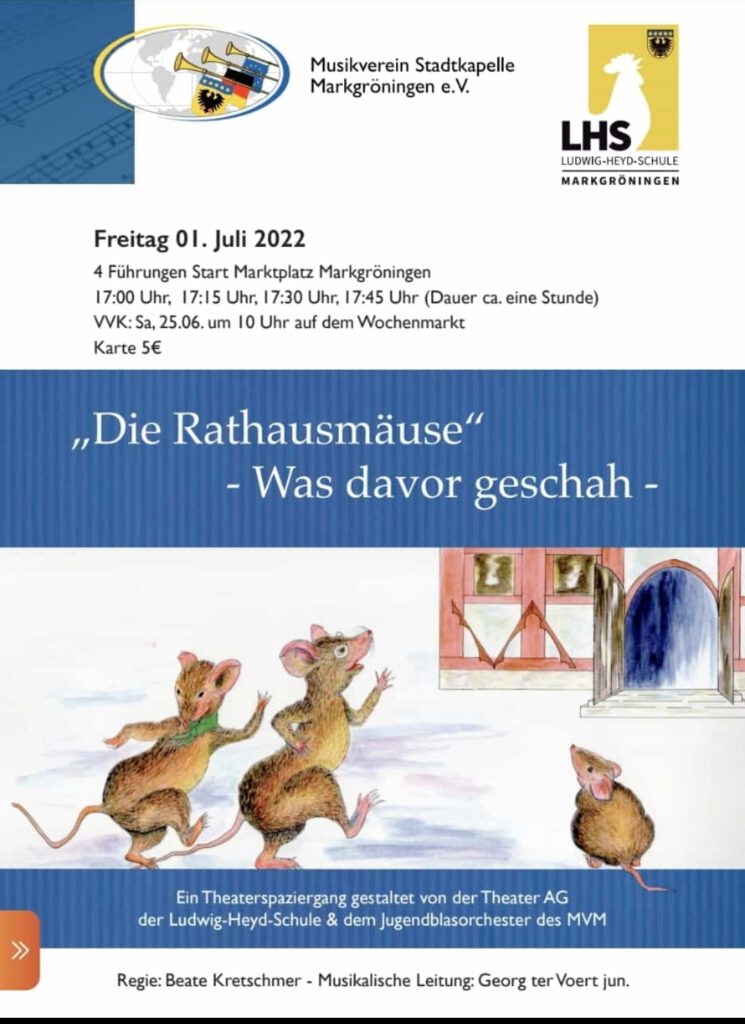 Die Rathausmäuse nach dem gleichnamigen Buch von Frau Schad sind ja bekannt in Markgröningen, aber wer weiß eigentlich, was davor geschah? Wie kamen die Rathausmäuse eigentlich ins Rathaus? Das erzählen und […]