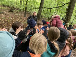 Am Montag, den 6. Oktober 2025 hat die Klasse 4b im Klassenzimmer Apfelsaft gemacht. Einige Kinder haben Frau Lampriani geholfen, die Sachen hochzutragen. Es waren ganz schön viele Äpfel. Zuerst mussten die Äpfel gewaschen werden.