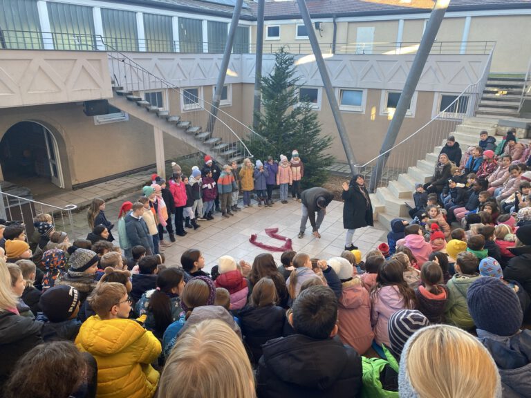 Danach haben sie noch ein Gedicht vorgetragen und ein paar lustige Geschichten erzählt – und dann durften wir in die große Pause.