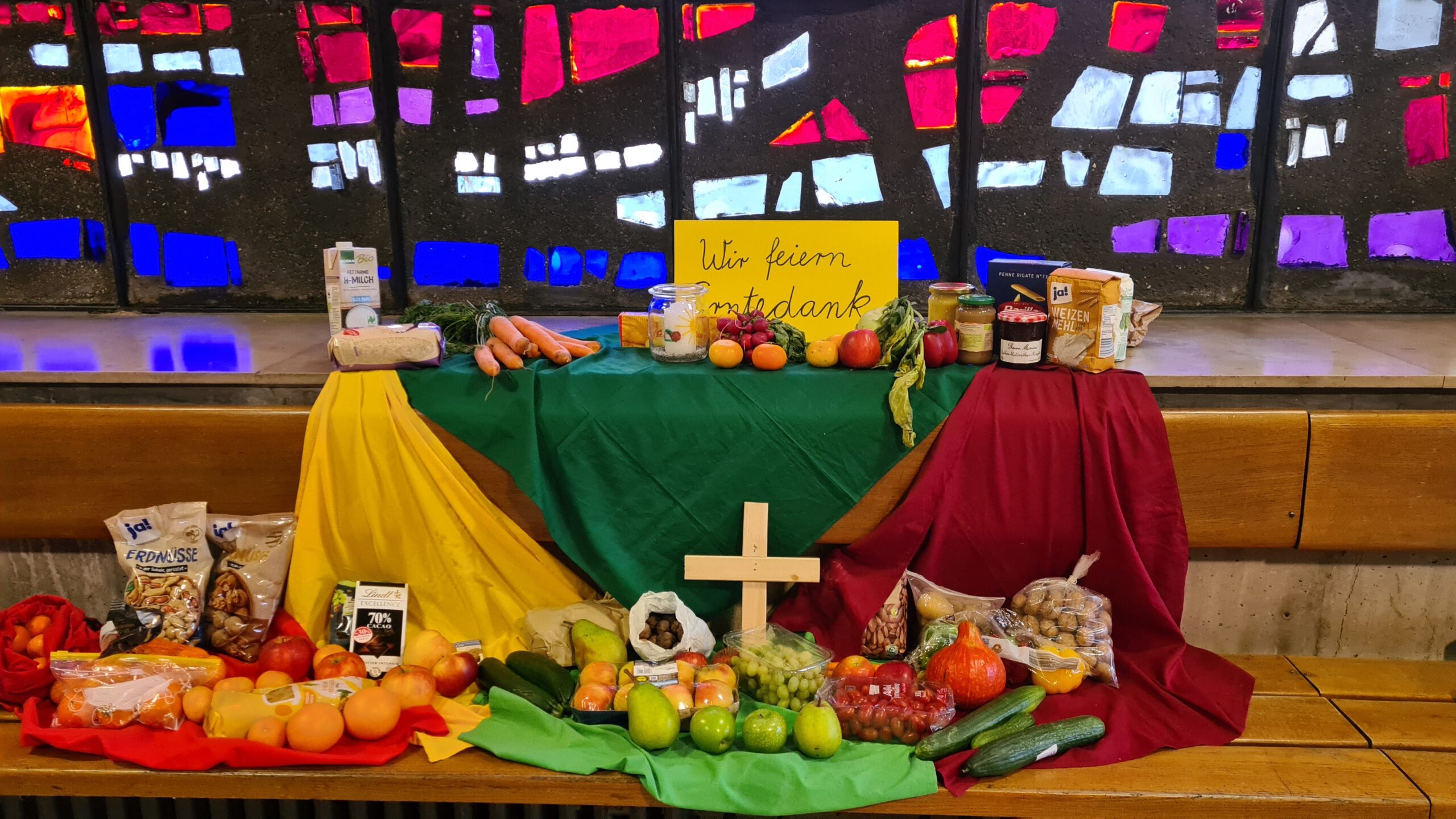 Am Donnerstag vor den Herbstferien haben alle Religionskinder der Klasse 2 ein Erntedankfest gefeiert. Dafür trafen wir uns beim bunten Fenster neben den Lerninseln. Alle hatten Gaben mitgebracht: Gemüse, Obst, […]